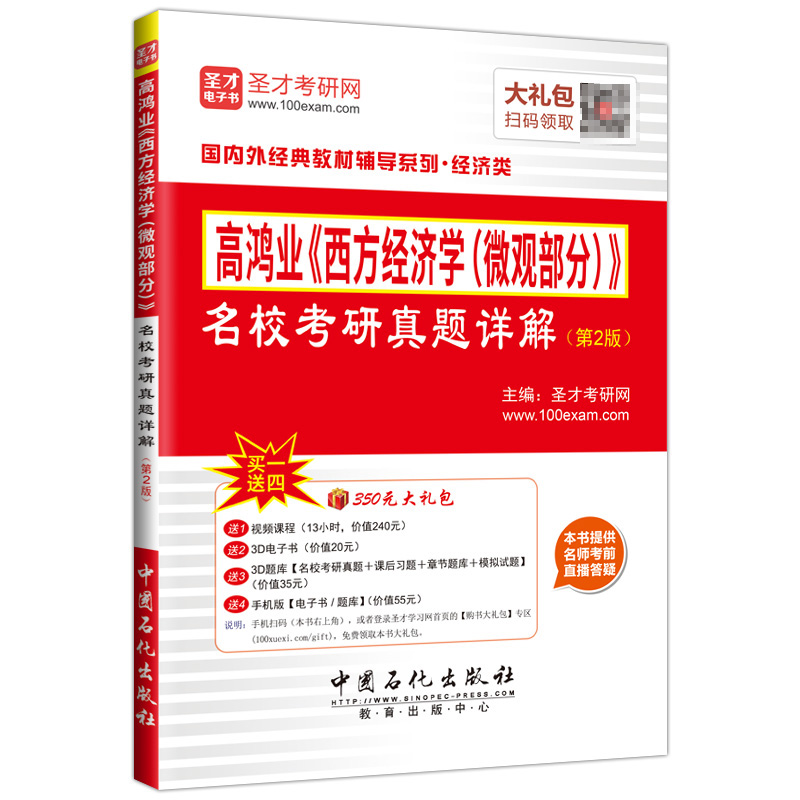 购买高鸿业《西方经济学(微观部分)》名校考研真题详解(第2版)还可享受大礼包增值服务(手机扫码(本书封面的二维码),或者登录圣才学习网首页的【购书大礼包】专区(www.100xuexi.com/gift),取本书大礼包。),具体包括:①视频课程(13小时,价值240元);②本书3D电子书(价值20元);③3D题库【名校考研真题+课后习题+章节题库+模拟试题】(价值35元);④手机版【电子书/题库】(价值55元)。